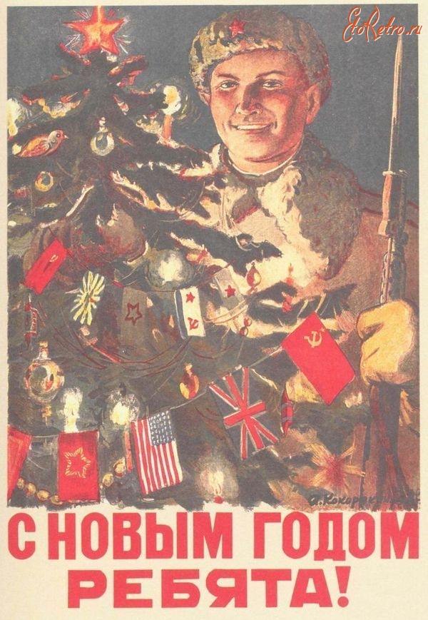 Подборка новогодних военных открыток СССР военного времени