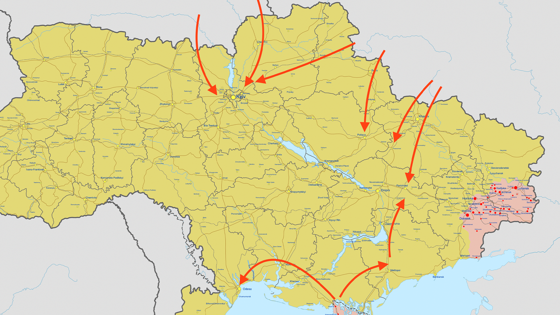 Вот только группировка войск оказалась совершенно недостаточной для такого огромного плана. А еще хуже было исполнение. Российские войска ориентировались по бумажным картам восьмидесятых годов, не имели адекватной связи, разведки, единоначалия и хорошо выстроенной логистики. И главное — путинские части не имели плана на случай мощного сопротивления, поэтому все и провалилось. А теперь по итогам этого плана российские войска оказались на довольно невыгодных позициях — Киев не достижим, Херсон пришлось вернуть, от Харькова фронт тоже отодвинут. И предел мечтаний — захват Бахмута.