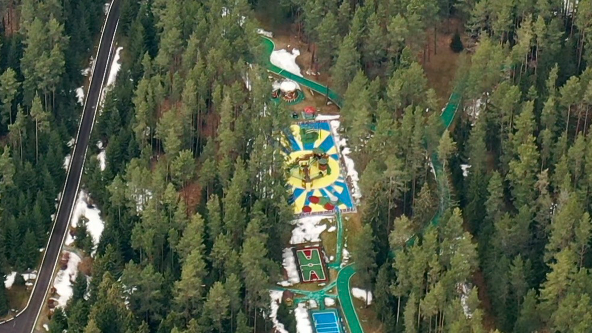 Мы сделали важные дополнения к этому расследованию и показали новые кадры. Вот, например, спецстанция, на которую прибывает тот самый путинский бронепоезд. А вот площадка, где играют дети Путина. Это мы сняли с дрона еще до начала вторжения. Есть подозрение, что теперь ее перекрасили в более патриотичные цвета.