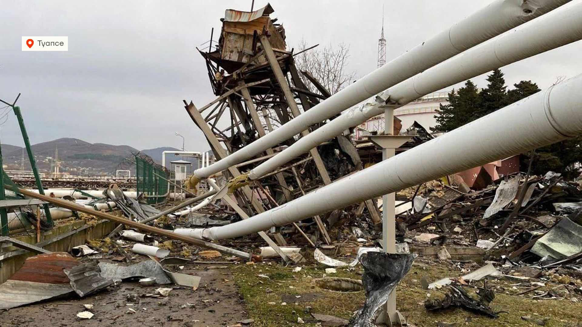 А вот это Туапсе. Нефтебаза повреждена не сильно, но заметно. По самим бакам с топливом не попали.