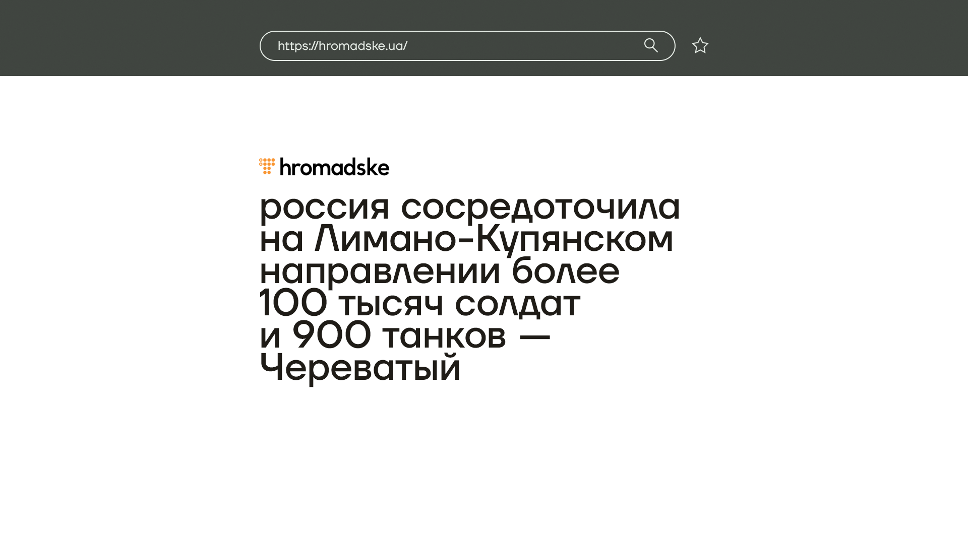Никаких 100 тысяч солдат и 900 танков, а уж тем более 370 РСЗО мы не увидели. Вероятно, это было преувеличение или речь шла о всей группировке российских войск на Луганском фронте — от Кременной до российской границы. Хотел бы я показать вам кадры боев оттуда, но их по сути нет. Есть только некоторые карты обстрелов. И все это также подтверждает малый масштаб сражения. Российская сторона в основном публикует постановочные видео.