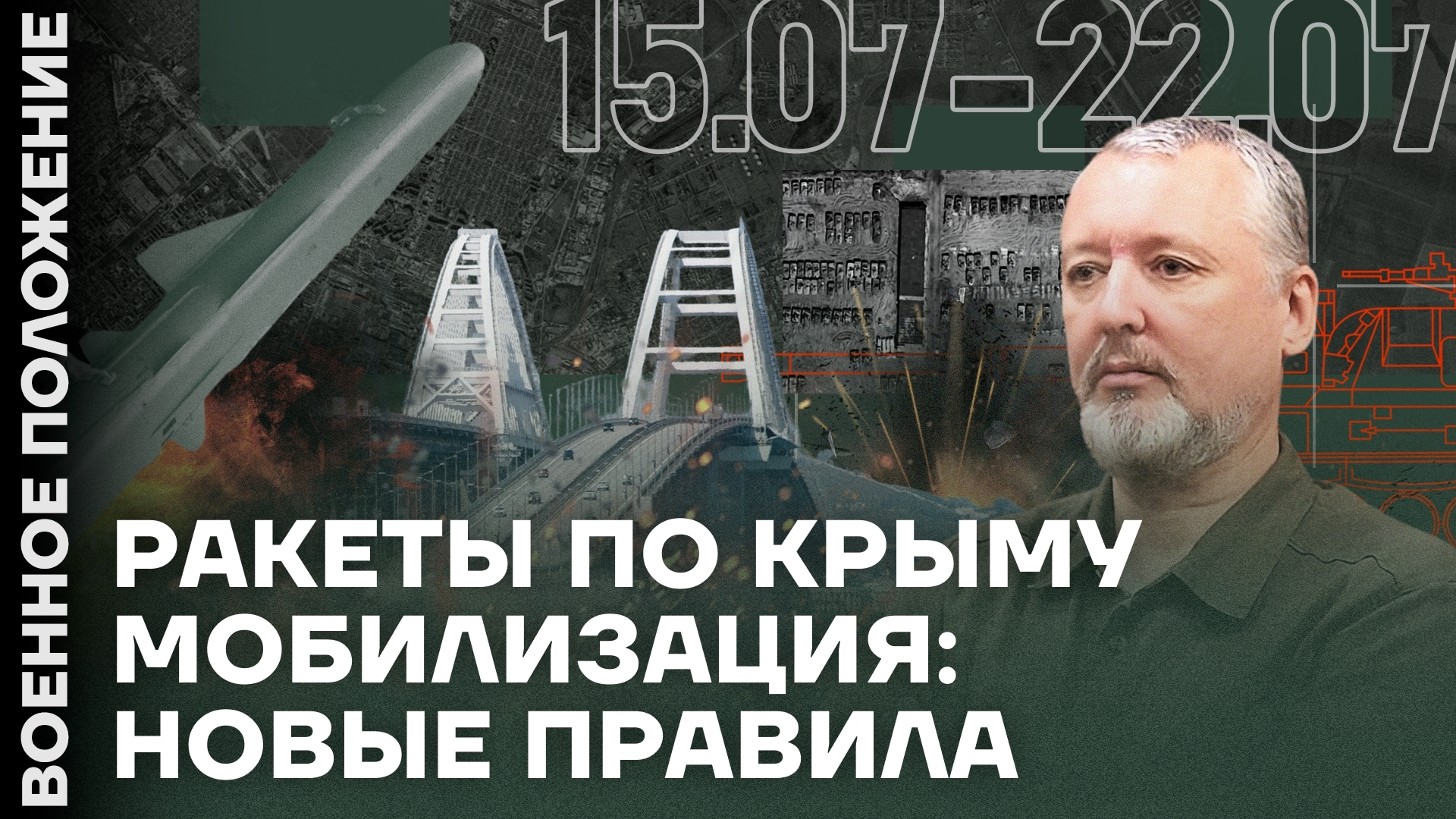 Всем привет. С вами Ян Матвеев и передача «Военное положение». Сегодня поговорим о наступлении российских войск, боях на юге и, конечно, ударах по Крыму и Керченскому мосту. Расскажу, как российские власти готовятся к новой волне мобилизации, пройдемся по данным о потерях и главной потере ультрапатриотов — Стрелкове-Гиркине конечно. Давайте начнем.