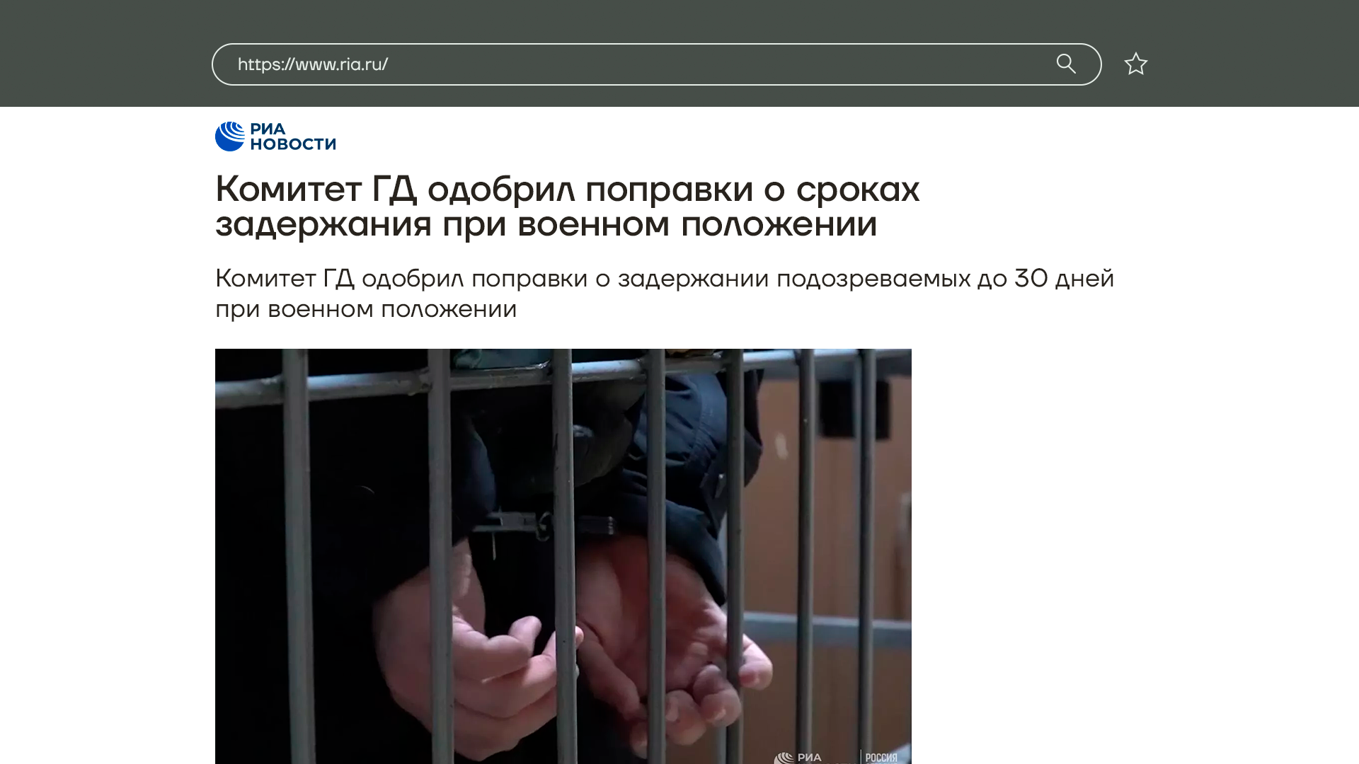 Еще очень важный момент — Госдума поддержала идею во время военного положения задерживать подозреваемых в преступлениях на 30 суток. Сейчас задерживать можно не более чем на 48 часов.