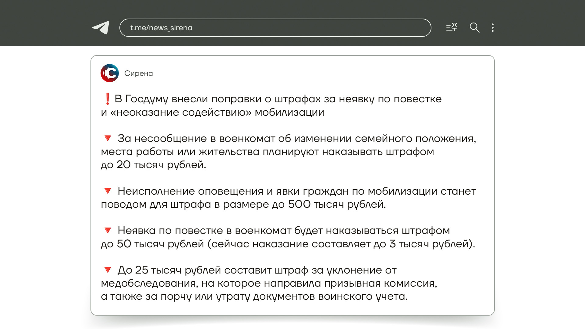 На этой неделе Госдума решила увеличить штрафы за неявку по повестке. Сейчас максимальный штраф — 3 тысячи рублей, предлагают его поднять до 40–50 тысяч. А если не сообщить в военкомат о смене места жительства или работы — оштрафуют на 25 тысяч. Организации вообще могут попасть на 500 тысяч рублей, если не оповестят сотрудников, что им надо срочно явиться в военкомат. Это новый метод у российской власти как-то заставить как-то ходить по повестке. Будут пугать штрафами. Возможно, эта мера будет довольно действенна. Одно дело, когда рассказывают про какую-то уголовку, которую ни на кого не заводят, а другое дело – деньги, которые приставы могут в любой момент могут просто списать со счета. Такие решения суд будет принимать гораздо легче, чем любые уголовки и так далее. Еще предстоит понять, как с этим предстоит бороться и на что это вообще повлияет.