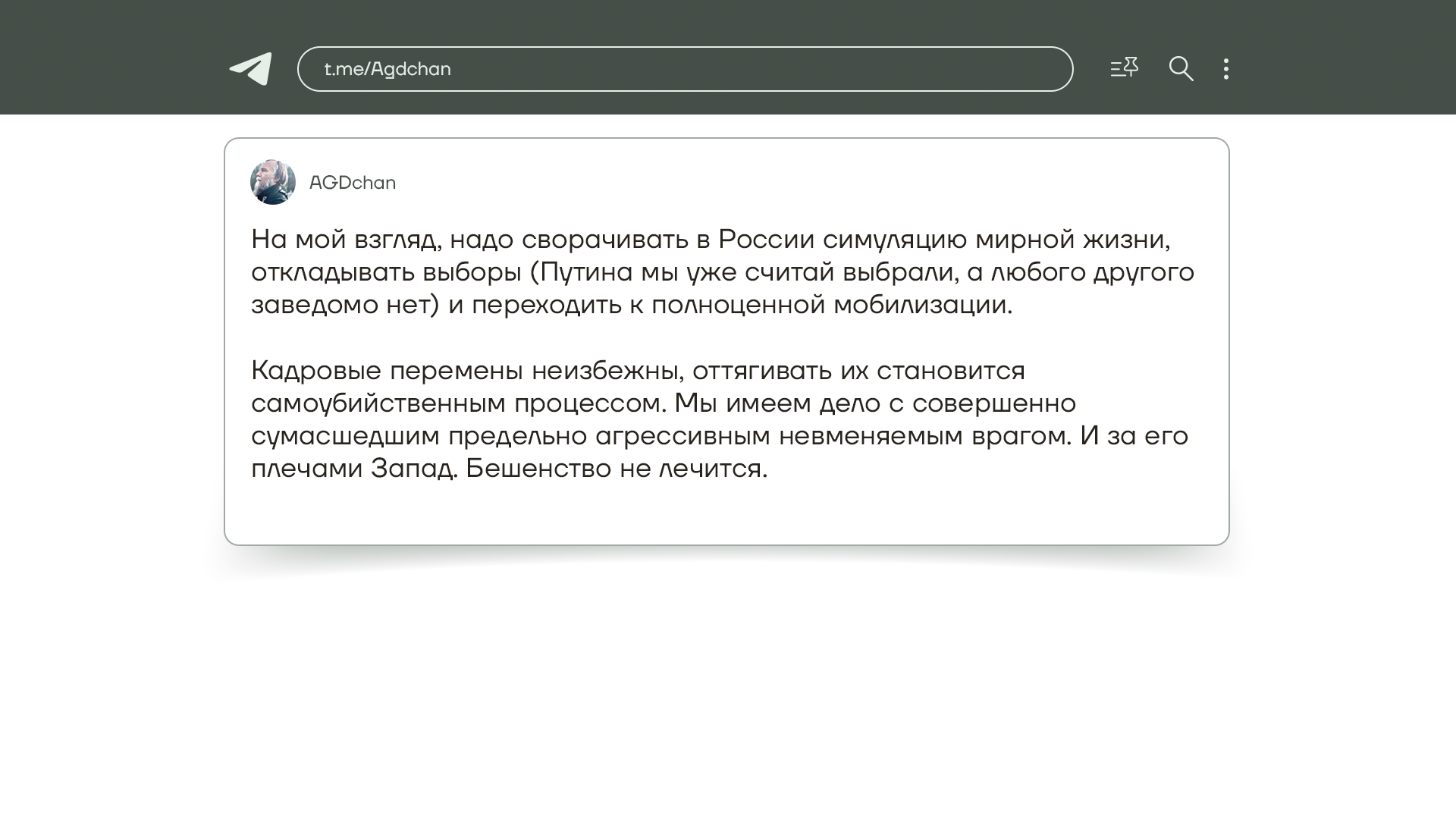 Александр Дугин написал, что пора сворачивать в России симуляцию мирной жизни и проводить полноценную мобилизацию. Это его так атака на Крымский мост так раззадорила. Интересно еще, как он уверенно пишет, что нужно отложить выборы, ведь Путина мы, оказывается, все уже выбрали. Интересно, как в Кремле посмотрят на это, потому что в 2024 году перевыборы Путина. Неизвестно, что они затеяли в связи с этим.