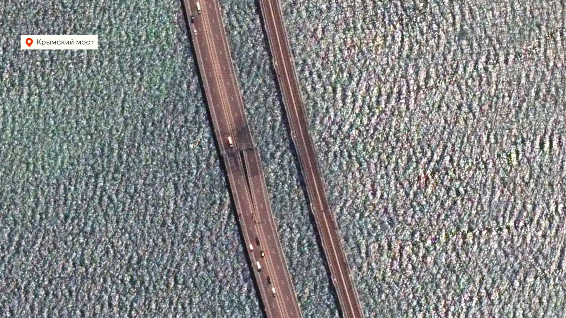 На этот раз — морскими беспилотниками. Взрыв произошел снизу и сдвинул с места сразу две пролета. Если посмотреть по спутниковому снимку, то видно, как изменился цвет обеих частей моста. Но железнодорожный путь в итоге не пострадал. Атака произошла ночью 17 июля — прогремело два взрыва. В это время на мосту было не так много автомобилей, но все равно один попал прямо на момент взрыва — мужчина и женщина погибли, их дочь получила сильные травмы, но выжила и сейчас находится в больнице. Какие именно беспилотники применялись для атаки — непонятно. Раньше украинские военные использовали вот такие лодки-камикадзе, но они вряд ли несут достаточный заряд для подрыва моста.