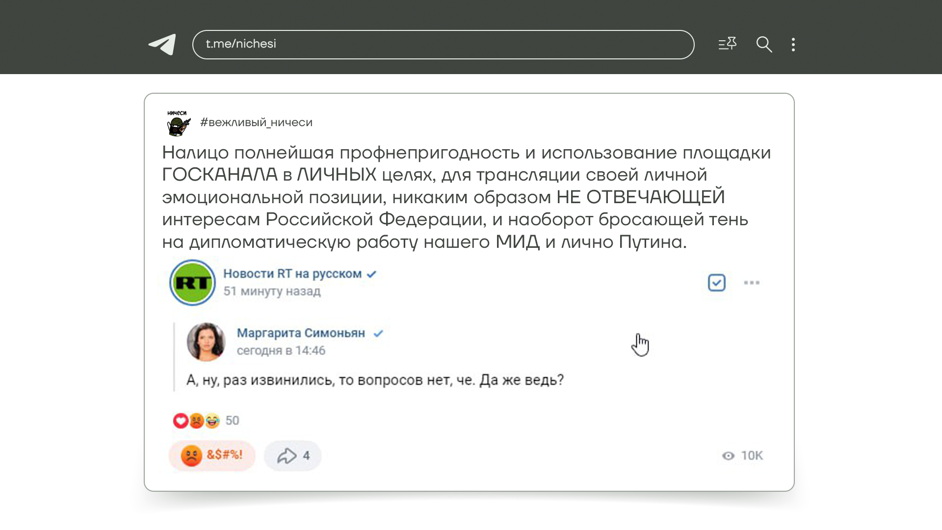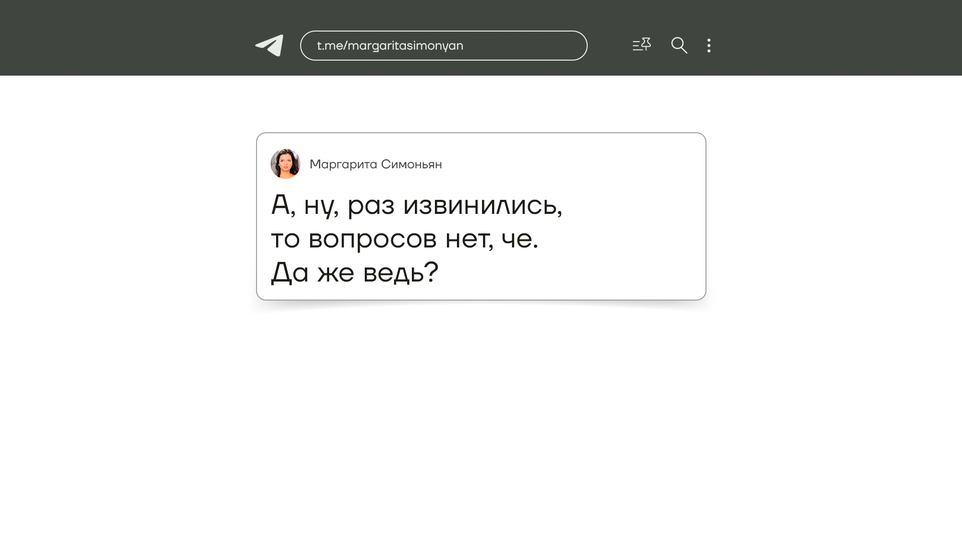 Наша «любимая» Маргарита Симоньян тоже высказалась на этот счет. Написала, что раз Алиев извинился перед Путиным за убийство миротворцев, то мы это так легко простим что ли. И вызвала этим негодование среди патриотов, мол как это так она посмела публично усомниться в российской дипломатии и лично в Путине. В общем, у Z-патриотов все неспокойно.