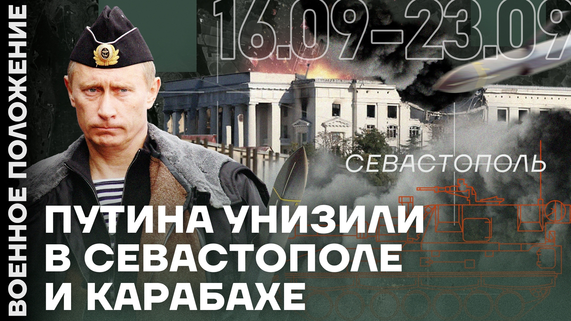 Всем привет. С вами Ян Матвеев и передача «Военное положение». Украинские войска прорвали фронт и убили командующего Черноморским флотом? Сейчас разберемся. Кроме того, посмотрим на другие удары с обеих сторон, оценим потери и новые посты пропаганды почитаем. Поехали.