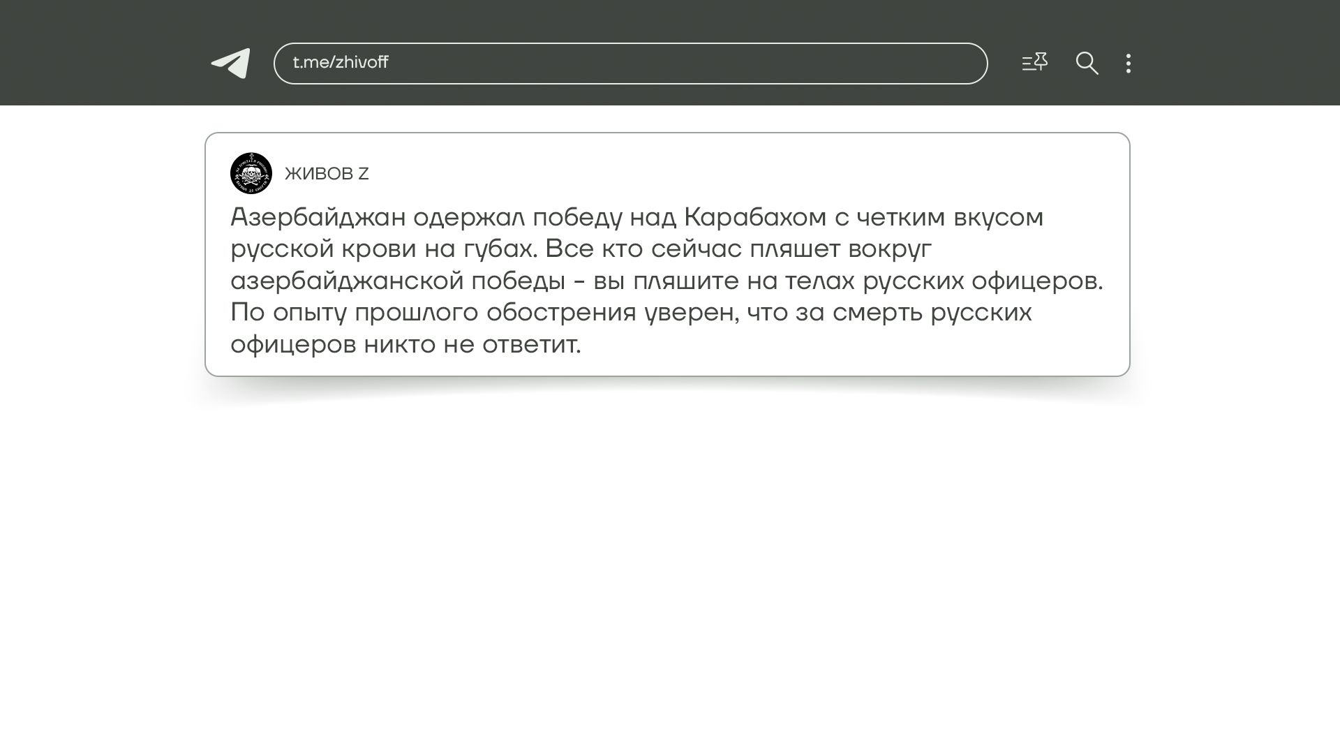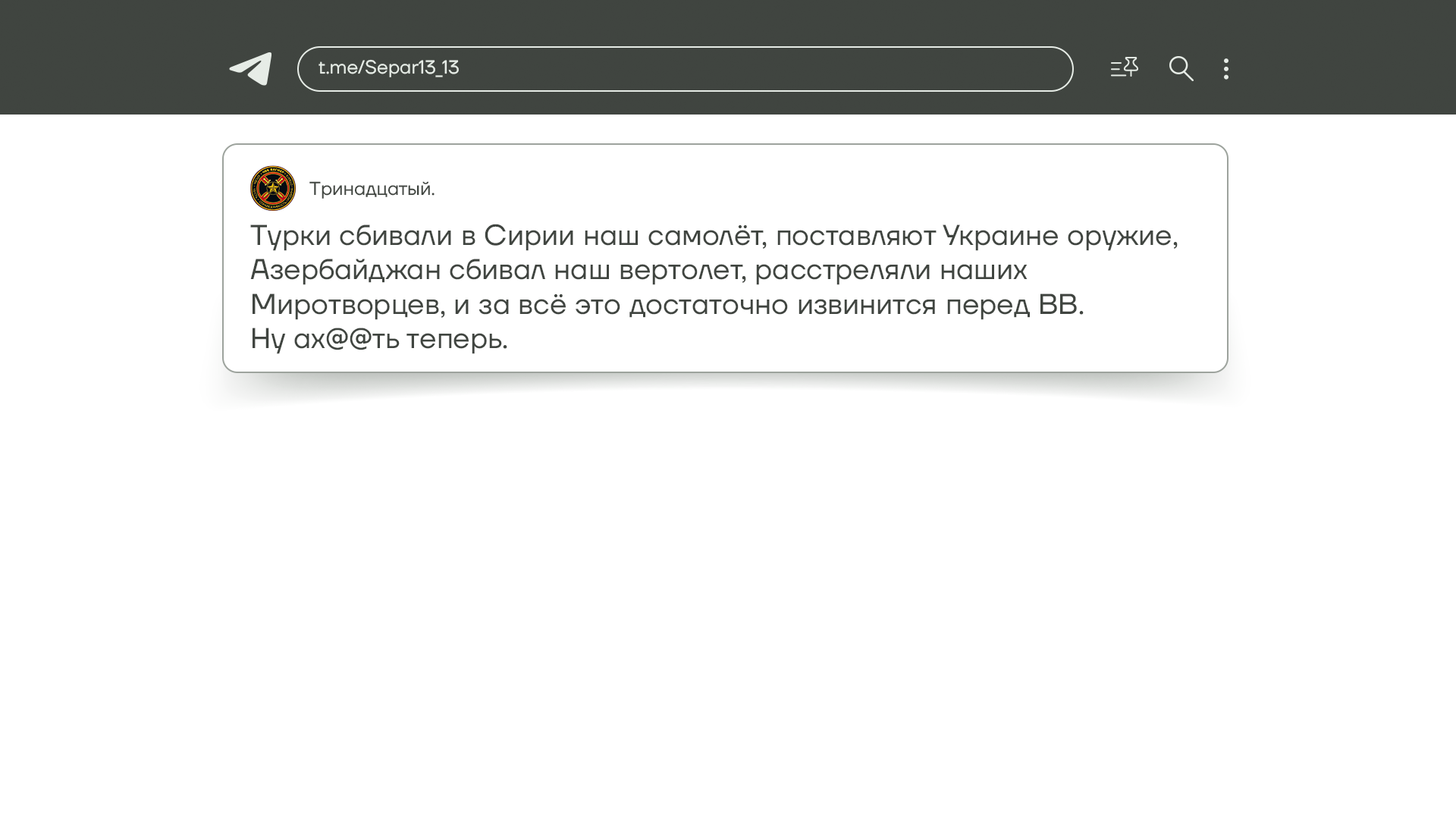 На этой неделе все внимание Z-военкоров и патриотов было приковано не к Украине, а к события в Нагорном Карабахе. А именно к обстрелу автомобиля российских миротворцев азербайджанскими военными. Поведение России в ответ на это событие вызвало у них волну негодования, но все они четко осознали главное — на военных российскому руководству все равно. И будь они в Украине, в Карабахе или где угодно — для российской власти и лично Путина военные всего лишь ресурс для удержания собственной власти, а не человеческие жизни.