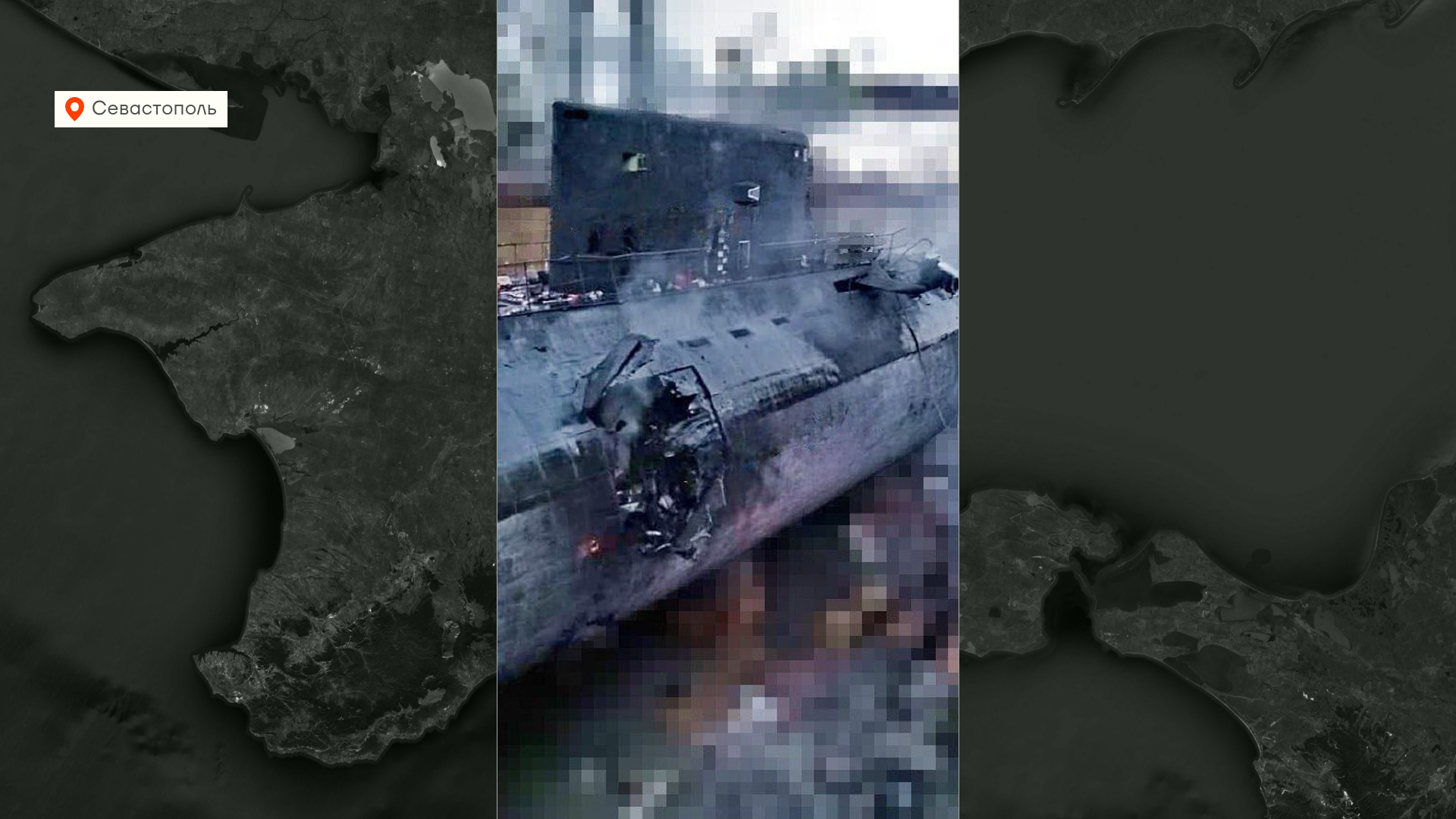 Подтвердилось уничтожение подводной лодки «Ростов-на-Дону» в Севастополе. Видны несколько попаданий ракет. Судя по виду этих попаданий, восстанавливать лодку практически невозможно. В теории все, конечно, можно все починить, заново буквально собрав часть этой подводной лодки, но это нецелесообразно и ее, скорее всего, утилизируют. Может быть, будут долго делать вид, что восстанавливают.