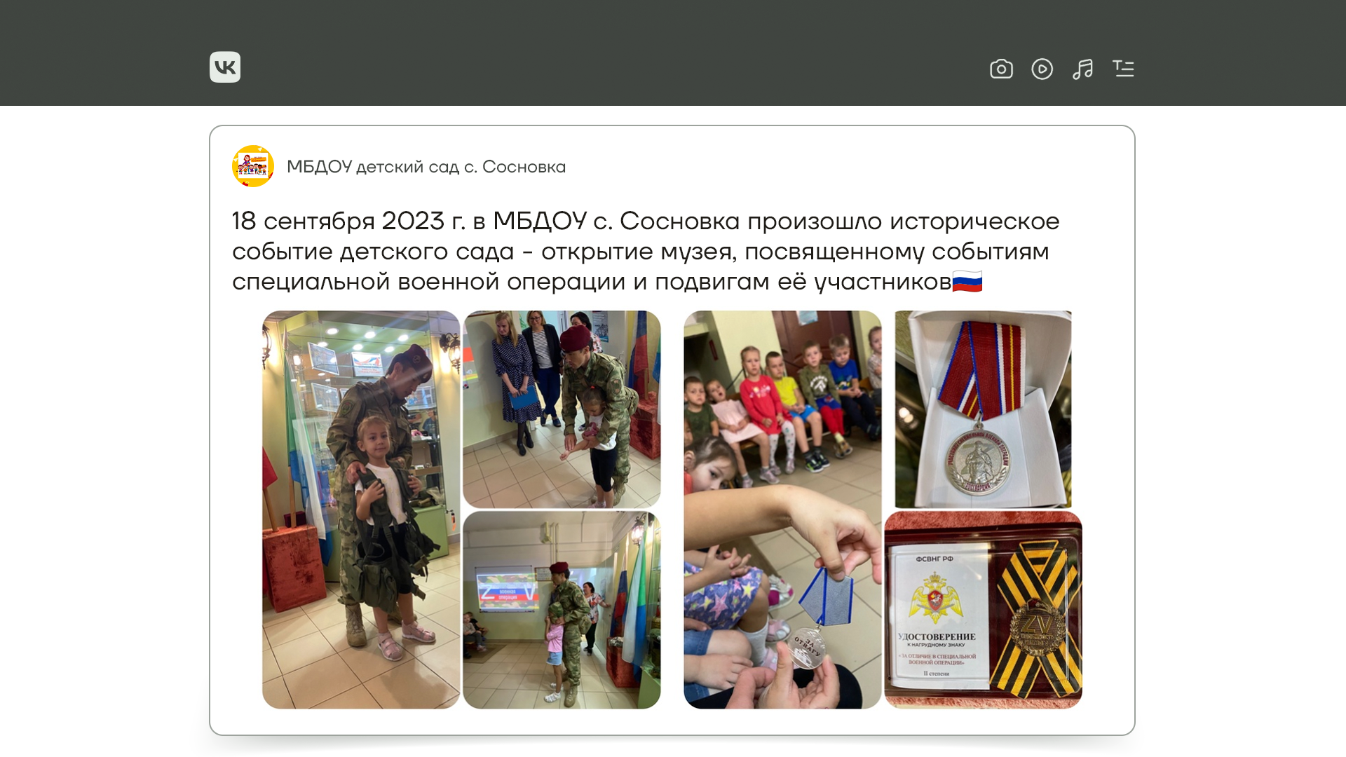 В Хабаровском крае открыли музей так называемой СВО. И прямо в детском саду, чтобы с раннего детства в детях патриотизм разыгрался. Позвали на открытие какого-то военного, который учил детей разгрузочные жилеты надевать.