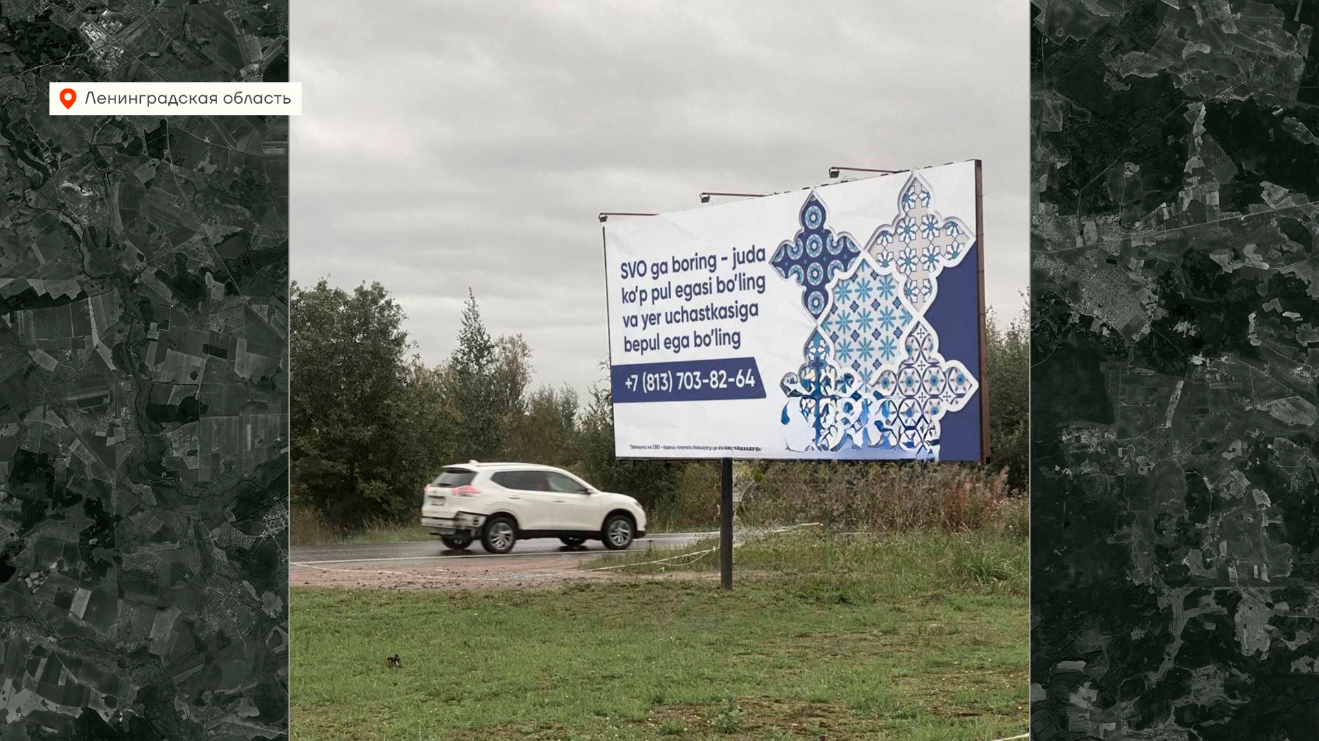 Вот еще реклама из Ленинградской области. Там заметили билборды на узбекском и таджикском языках с предложением поучаствовать в войне. Видимо, не так уж и активно россияне подписывают контракты, как об этом рассказывают власти.