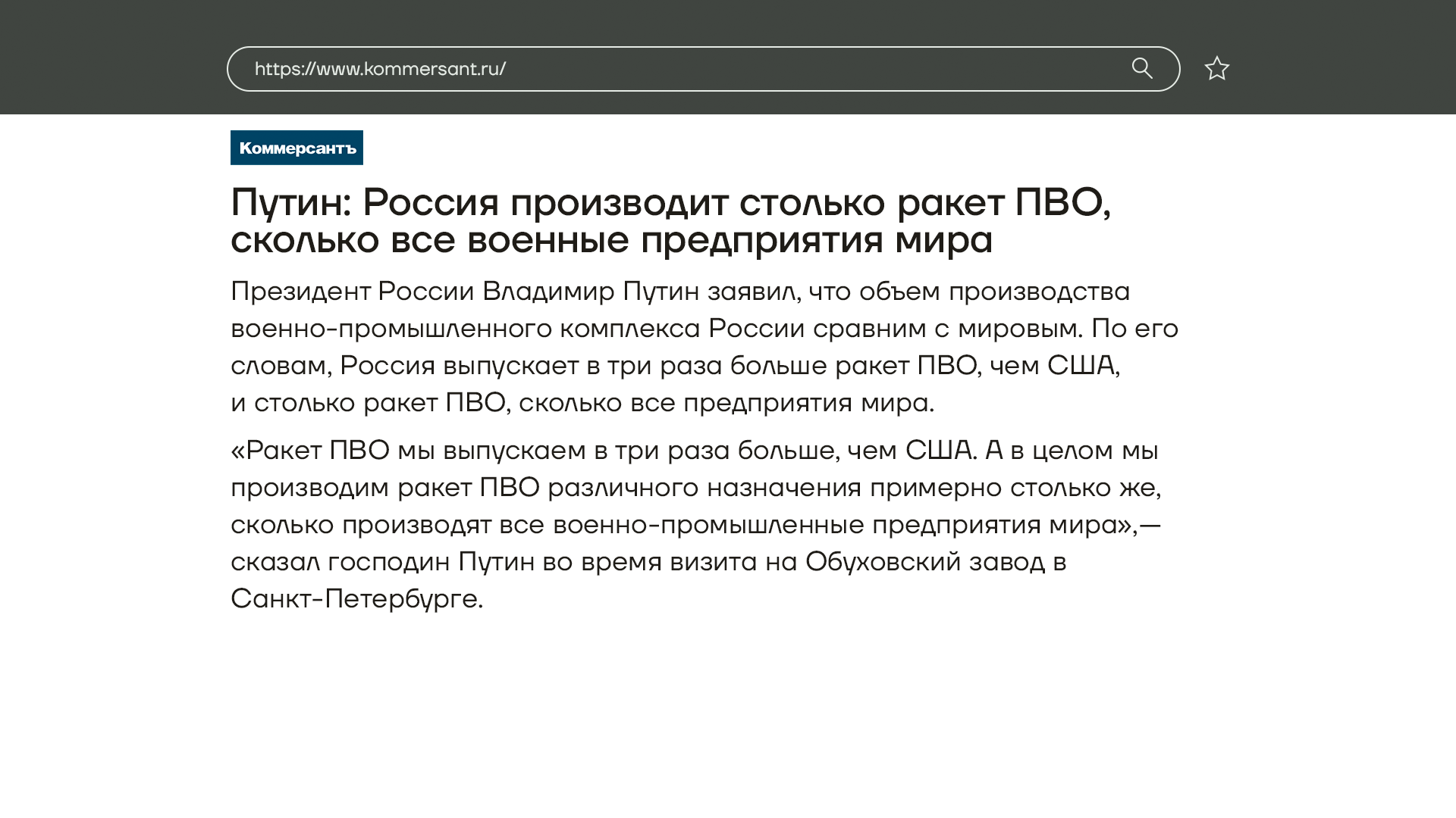 Владимир Путин: Вместе с тем нужно повысить и объемы производства средств контрбатарейной борьбы и ПВО. В этой связи много мы на этот счет говорили и дали ряд указаний по дополнению графика поставок на 2024 год соответствующей номенклатуры.
