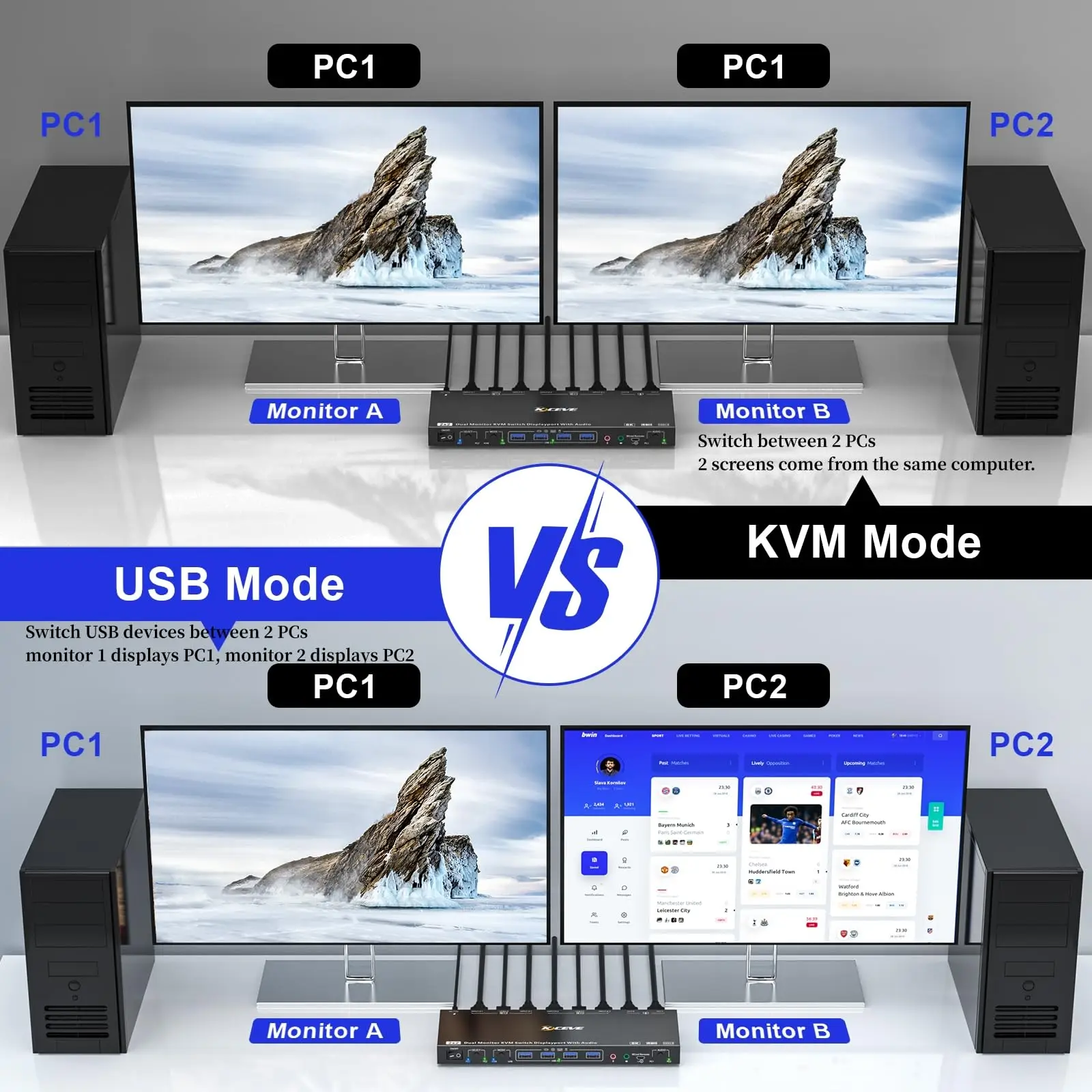RPOMtVdnЗдесь вы сможете купить Voice Controlled Displayport KVM Switch 2 Monitors 2 Computers 8K@30Hz 4K,Dual Monitor KVM Switch,Support KVM Mode and USB Mode с бесплатной доставкой до вашего почтового отделения.