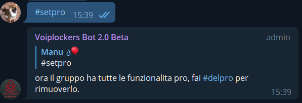 - comando #setpro per impostare le funzioni premium su massimo 5 gruppi.