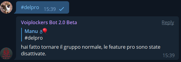 - comando #delpro per rimuovere un gruppo da pro.