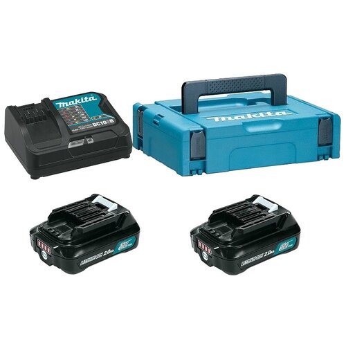 Le set Makita 197658-5 est composé de 2 batteries Li-Ion BL1021B et d'un chargeur Makita DC10SB. La batterie Li-Ion Makita 12 V, 2,0 Ah est conçue pour être utilisée avec les outils sans fil Makita 12 V. La batterie est dotée d'un boîtier résistant aux chocs et d'une doublure intérieure absorbant les chocs qui protège l'appareil des chutes et des impacts. Equipé d'un indicateur de niveau de charge, qui permet de surveiller sa charge. La batterie dispose de la technologie Li-ion : il n'y a pas d'effet mémoire, vous pouvez la charger à tout moment, quelle que soit la décharge de la batterie, et vous pouvez la stocker longtemps sans perdre sa charge. Le DC10SB charge 1 batterie BL1041B en 30 minutes.L'ensemble Makita 197658-5 se compose d'un chargeur Makita DC10SB (30 min de charge complète d'une batterie BL1021B), de deux batteries Makita BL1021B 2,0 Ah, avec indicateur de charge, ainsi que d'une valise en plastique pratique de la série technique MakPac type 1. données : Batterie : Conception de la batterie : slider Type de batterie : Li-Ion CXT Tension de la batterie : 12 Capacité de la batterie : 2,0 Ah Puissance : 24 W Temps de charge min : 25 min Temps de charge max : 60 min Indicateur de niveau de charge Technologie MAKSTAR Poids : 0,17 kg Chargeur : Type d'appareil : slider Type de batterie : Li-Ion Tension de la batterie : 12 VPuissance : 80 Watt Temps de charge 1,5 Ah : 22 min Temps de charge 2,0 Ah : 30 min Temps de charge 4,0 Ah : 60 min Indication de charge Dimensions : 55x95x150 Poids : 0,46 kg Équipement : 2 packs batteries BL1021B Chargeur DC10SB Valise MakPac