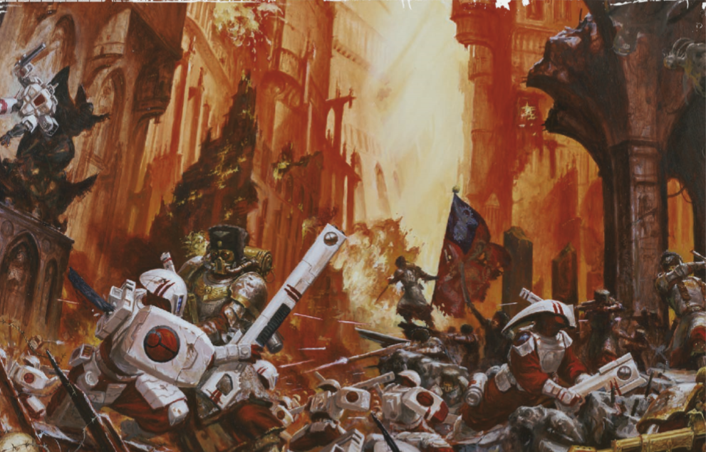 Когда Терры наконец достигли сообщения о технологически развитой расе ксеносов, которая узурпировала власть в нескольких мирах, давно принадлежавших людям, Империум отреагировал так же, как и всегда — сокрушительным ударом. Используя варп-переходы для развёртывания сил вторжения, совместная боевая группа Адептус Астартес и Астра Милитарум изгнала неприятельских поселенцев с захваченных ими планет, после чего перенесла войну в самое сердце чужеродной империи. Тау отступали, поскольку враг обходил их линии обороны, а кор'ваттра (космический флот) безнадёжно проигрывал человеческому. Армии Империума, как неудержимое чудовище, пронеслись по орбитальным станциям и колониям, превратив процветающие планеты в дымящиеся развалины.
