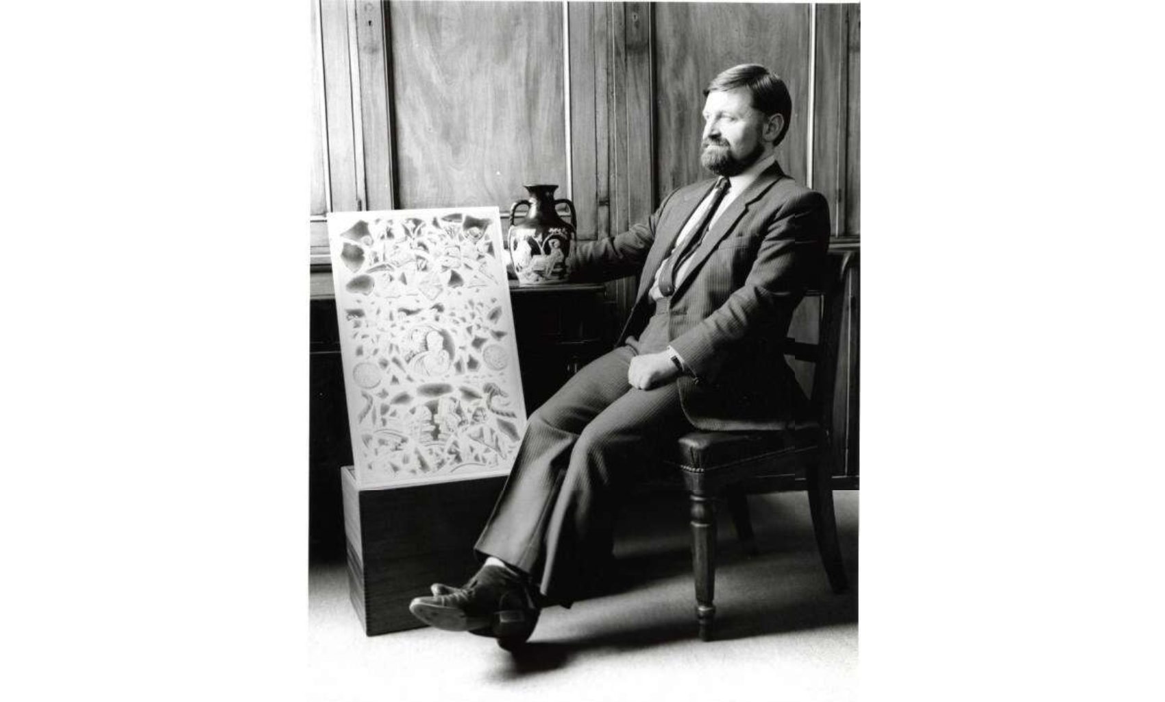 Он взял в руки фрагмент скульптуры из базальта, часть памятника из руин Персеполя и бросил её на витрину с вазой.