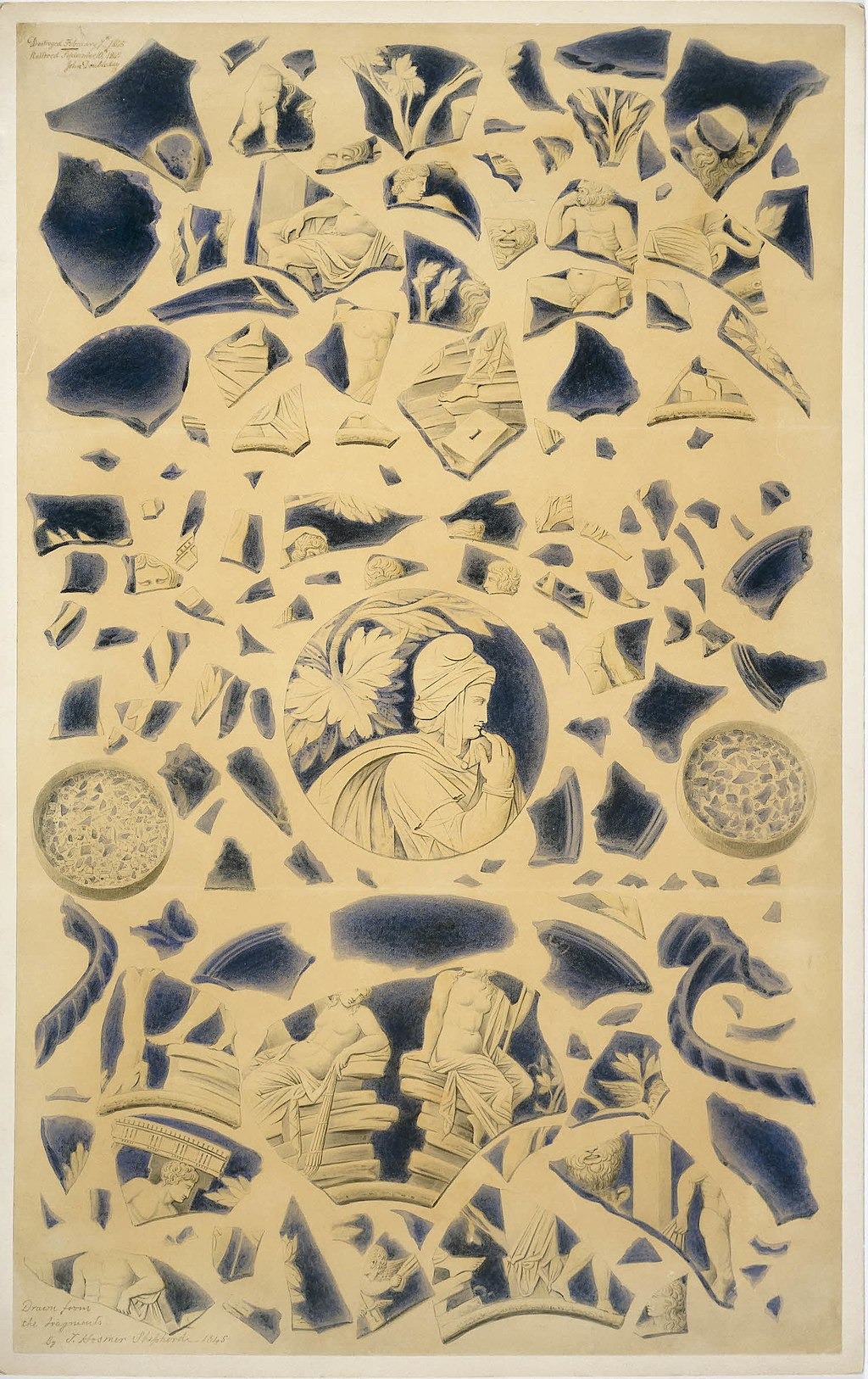 Верхнее изображение - рисунок барельефа Портлендской вазы