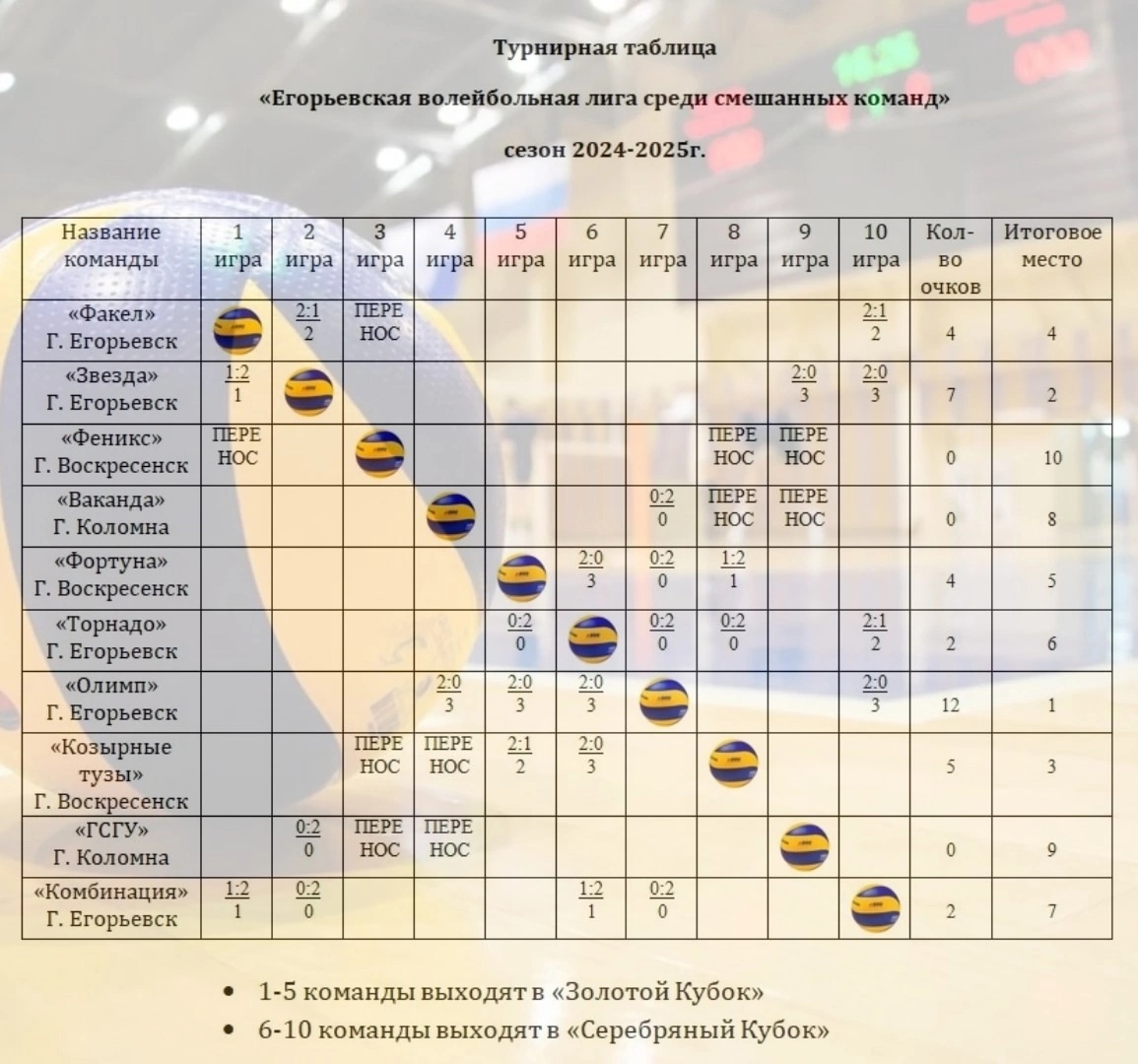 Волейбольная лига таблица