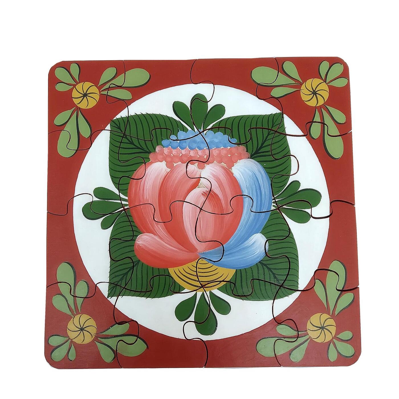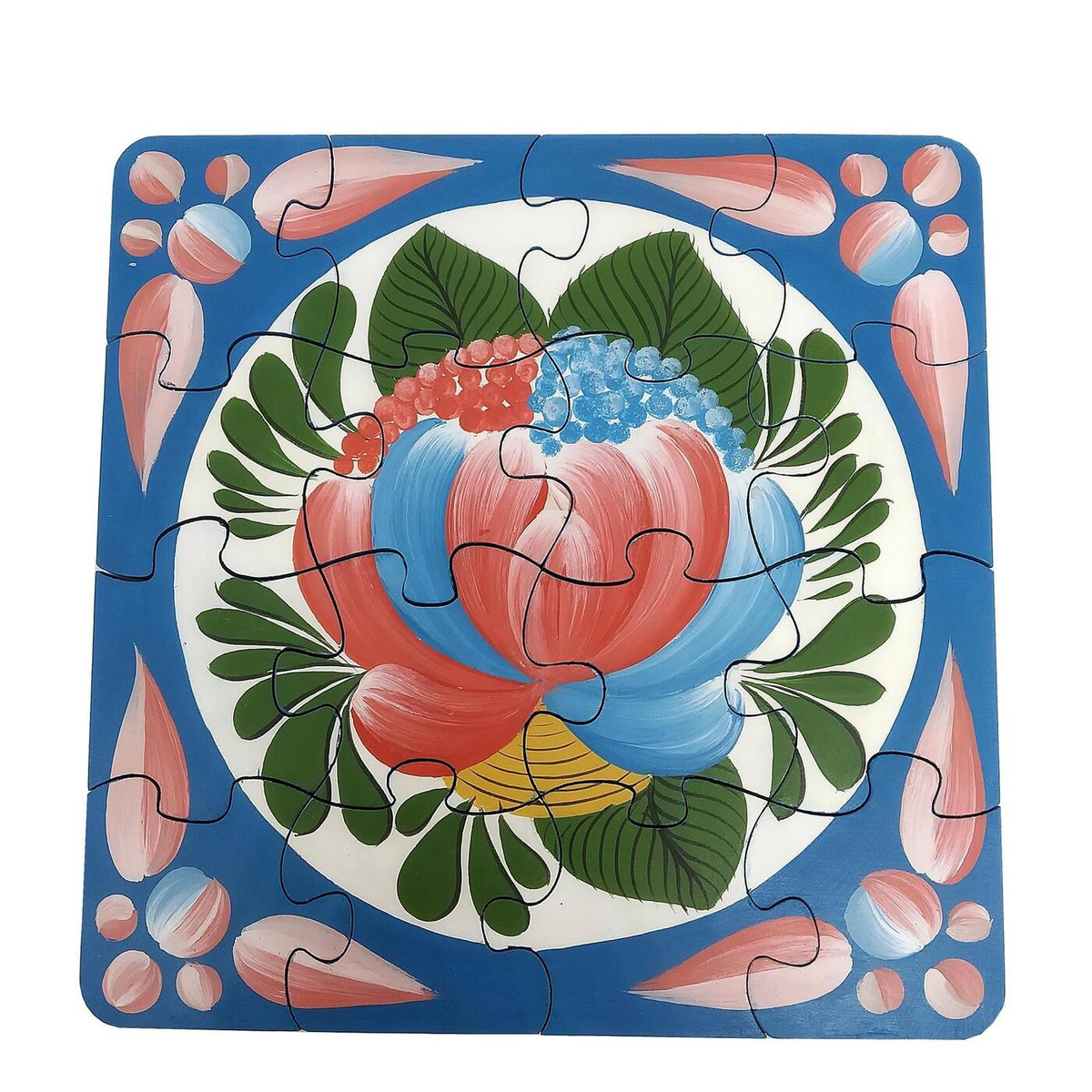 История Волховской росписи . «Волховская» роспись по дереву известна с XIX века и обладает особой живописностью . Ее особенностью является центральный элемент - так называемый «Волховский» розан в окружении листьев разной формы .
