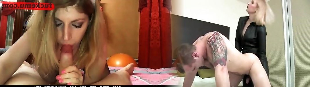 Rothaarige Duett von Stiefmutter und Stieftochter in femdom FFM Dreier