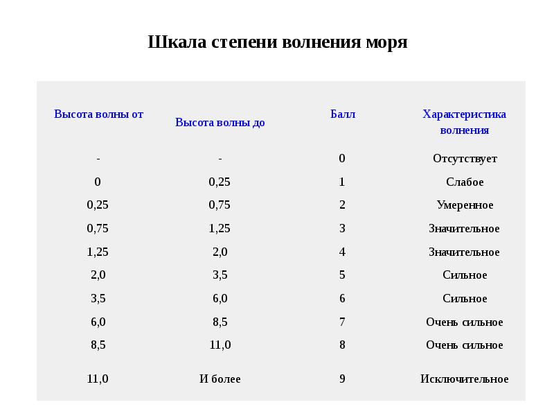 Волнение моря сегодня баллах