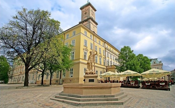 В центре площади находится Ратуша - здание городской администрации Львова. Если подняться на колокольню башни, преодолев 408 ступенек, перед Вами откроется шикарный вид на город с высоты 65 метров. Притом в башне возможно увидеть внутренний механизм самых старых часов в Украине. Родом они из Вены. Добраться до площади Рынок можно трамваями № 9,1,6. Подъем - платный, цена билета 30 грн.