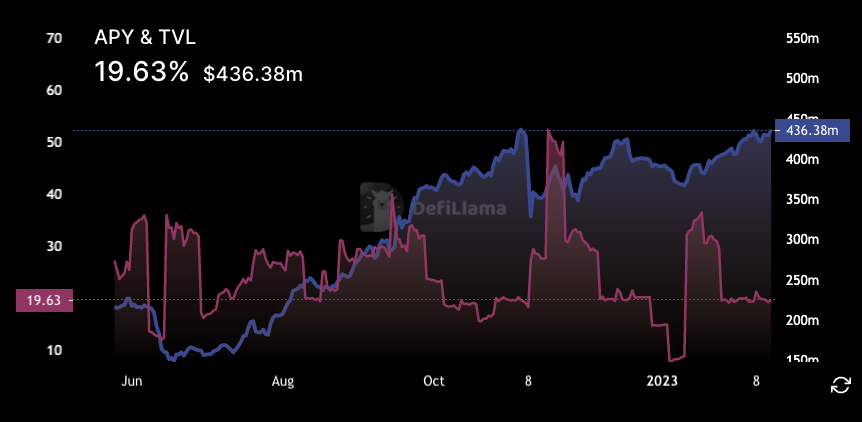 Будучи одним из пионеров реальной доходности, GMX за последние 12 месяцев получил впечатляющее распространение. GMX — это спотовая и перп биржа на Arbitrum. Торговля поддерживается многокомпонентным пулом ликвидности - GLP, который приносит поставщикам ликвидности комиссионные за маркетмейкинг, за свопы, совершаемые пользователями и их торговлю с кредитным плечом.