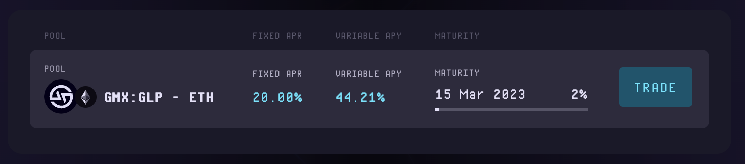 1. Фиксация доходности GLP: если вы являетесь держателем GLP, вы гарантированно получаете переменную доходность. Однако, как было сказано выше, она может быть довольно волатильной, поэтому вы можете захотеть зафиксировать ее, чтобы иметь гарантированный источник реальной доходности. Для этого вы можете войти в позицию FT по протоколу Voltz, что означает продажу переменной ставки (которую вы зарабатываете как держатель GLP) в обмен на фиксированную ставку. Это синтетически преобразует вашу переменную доходность GLP в фиксированную ставку.