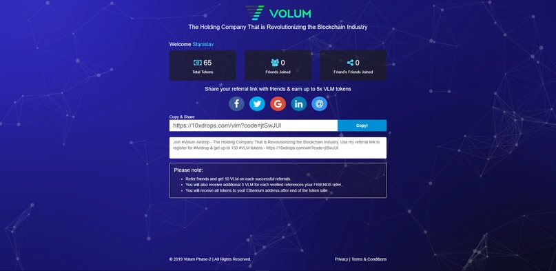 Далее можете брать свою реф. ссылку и распространять ее, чтобы заработать больше токенов.