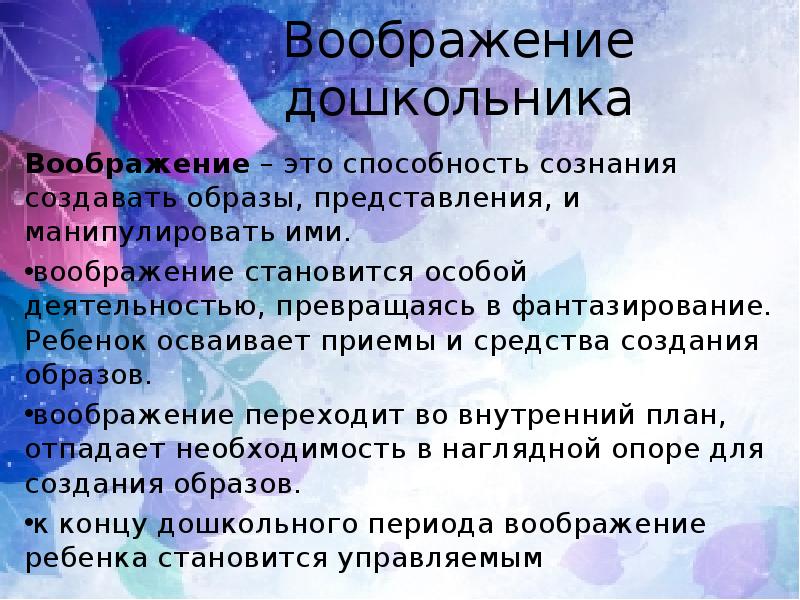 Воображения у детей старшего дошкольного возраста