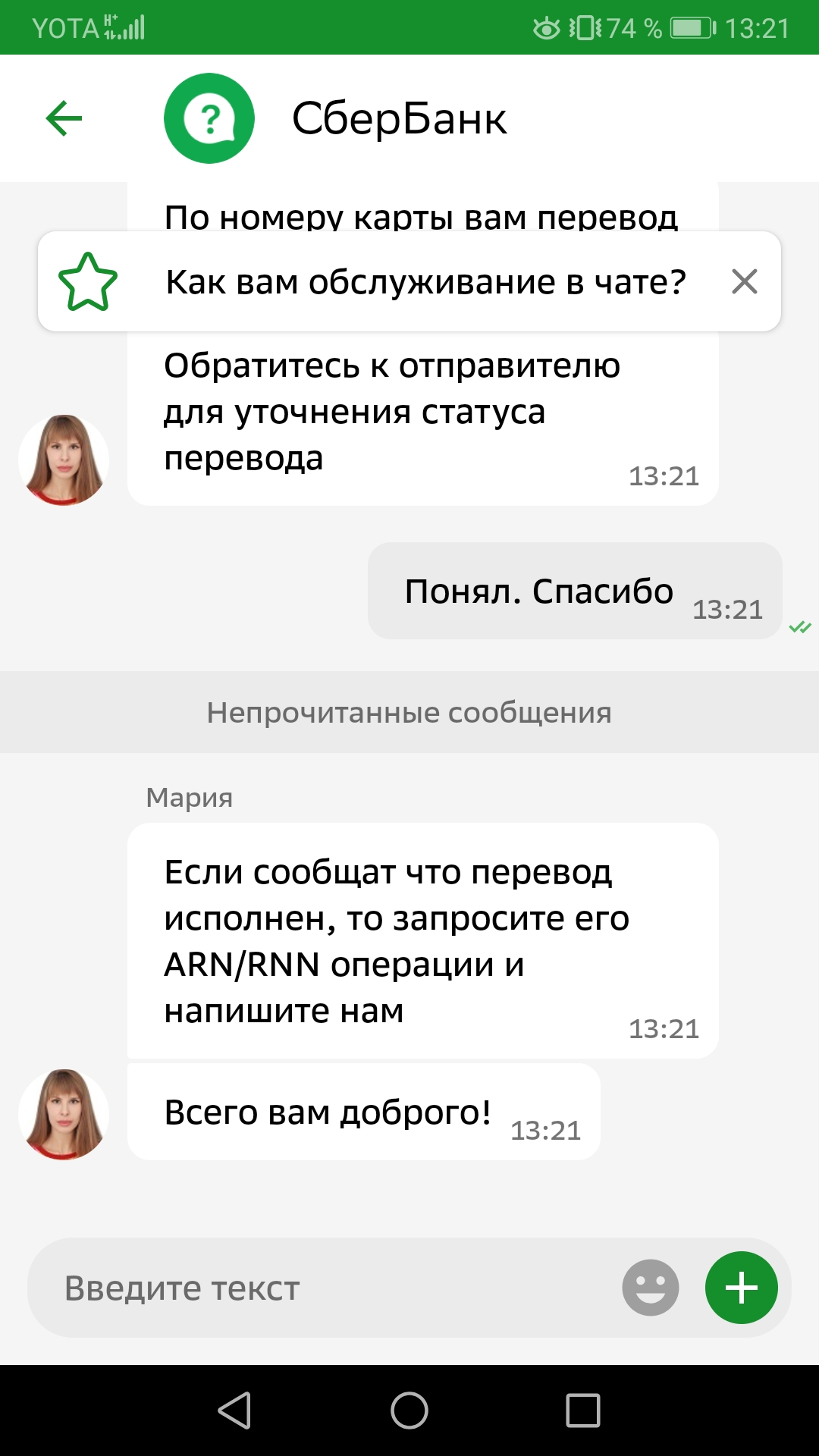 Вопрос специалисту сбербанка