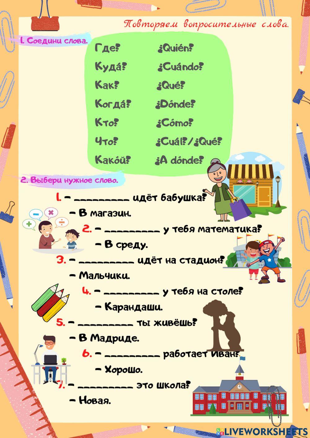 Вопросительные слова worksheets