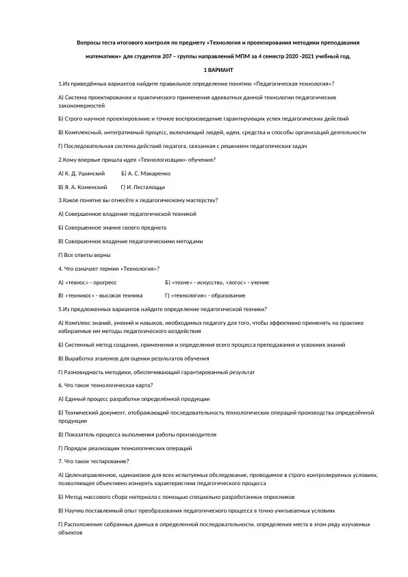 Вопросы для тестирования c
