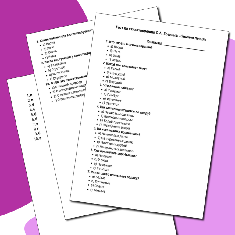 Вопросы с а есенина