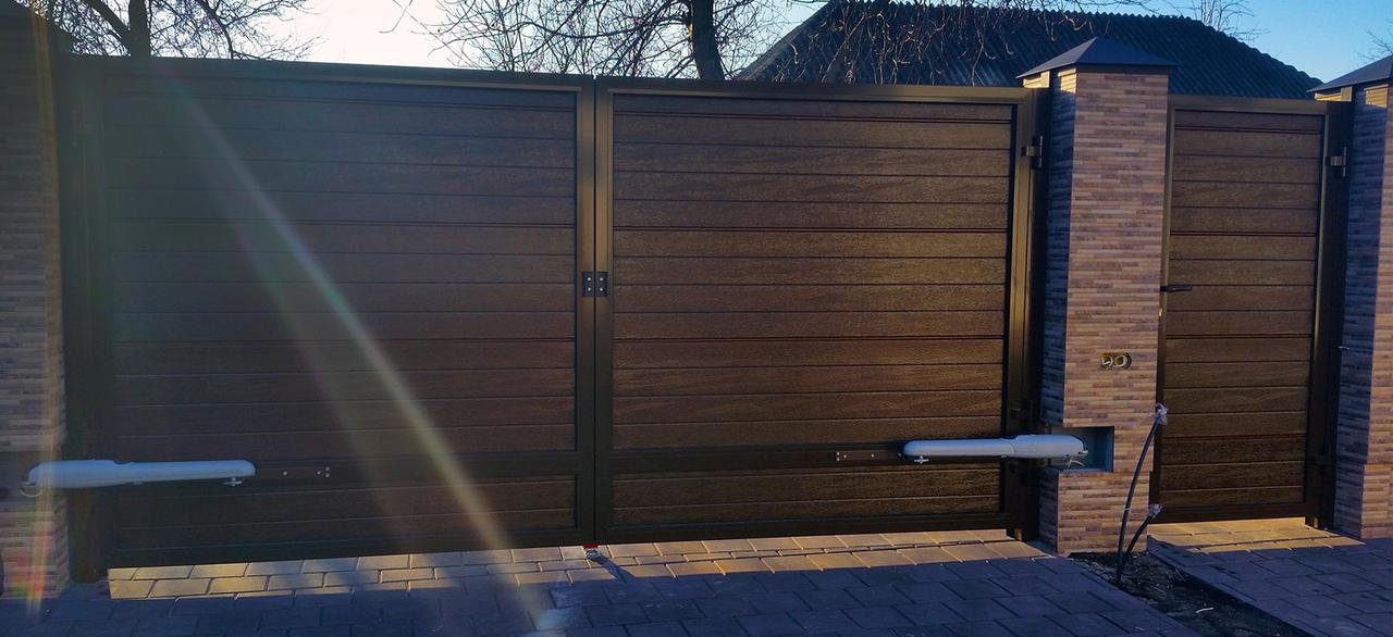 Красивые ворота для частного дома с забором и калиткой - 39 фото