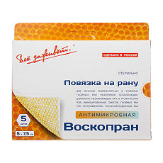Воскопран левомеколь 5х7 5 Воскопран - стерильные перевязочные средства на основе пчелиного воска .