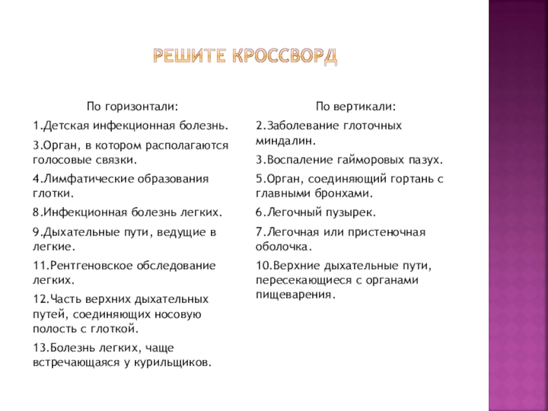 Воспаление Миндалин Кроссворд