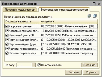 Восстановить последовательность 1с