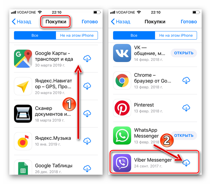 Восстановить удаленные приложения вайбер