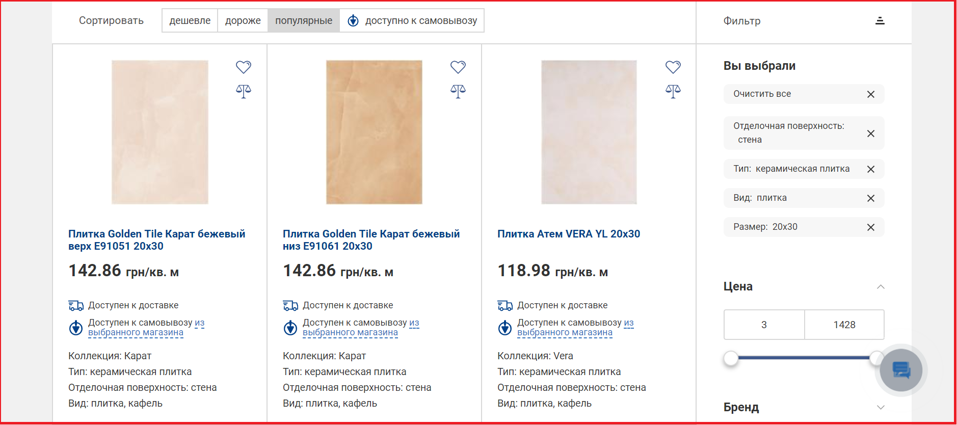 Можно приблизительно проверить Позицию 1. Плитка для стен 20 на 30 см.