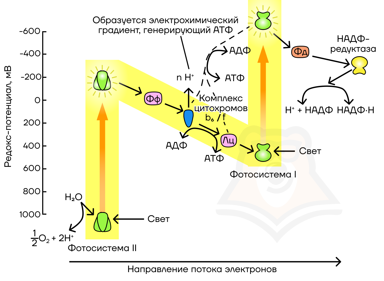 Возбуждение хлорофилла происходит