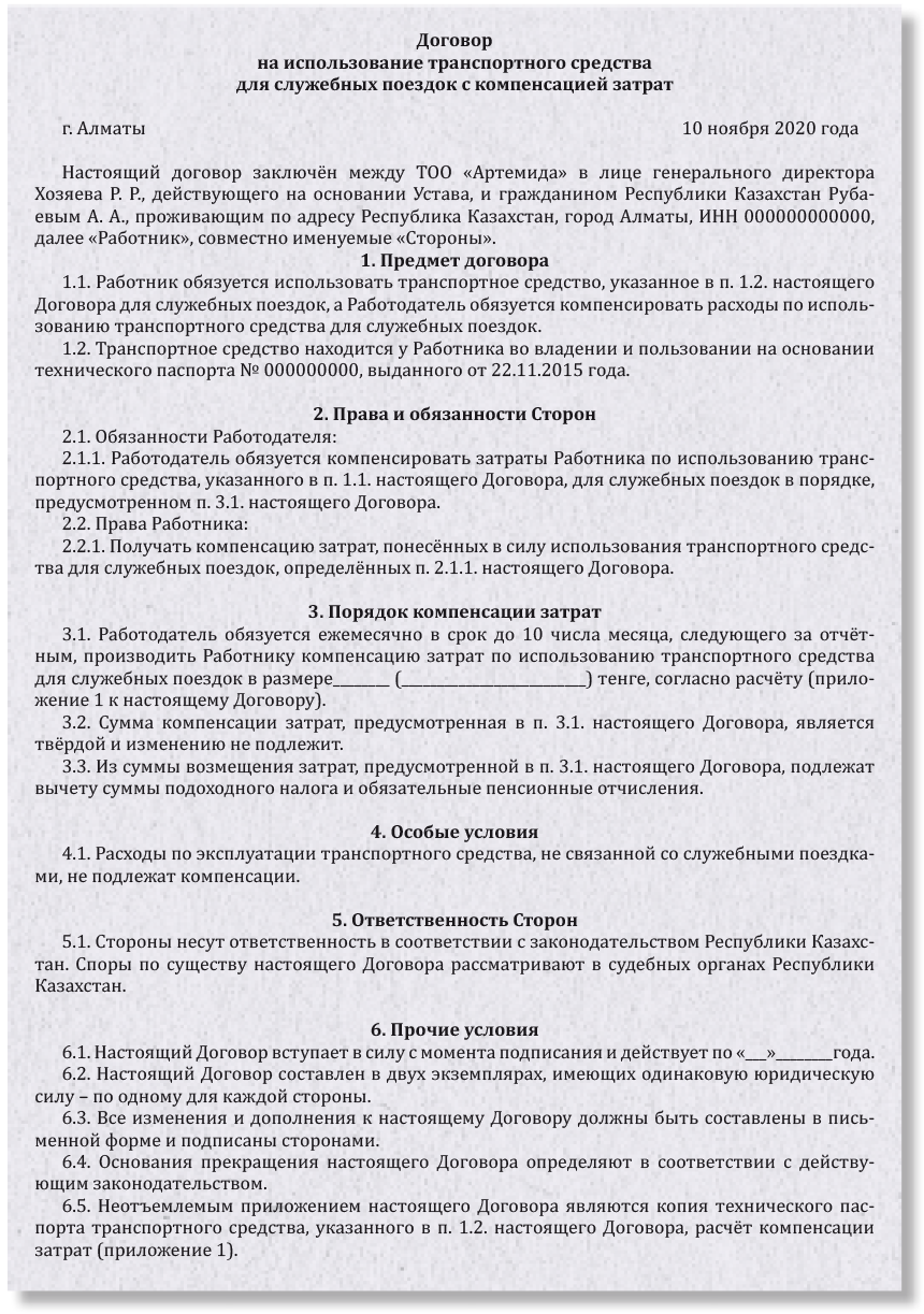Возмещение проезда договор