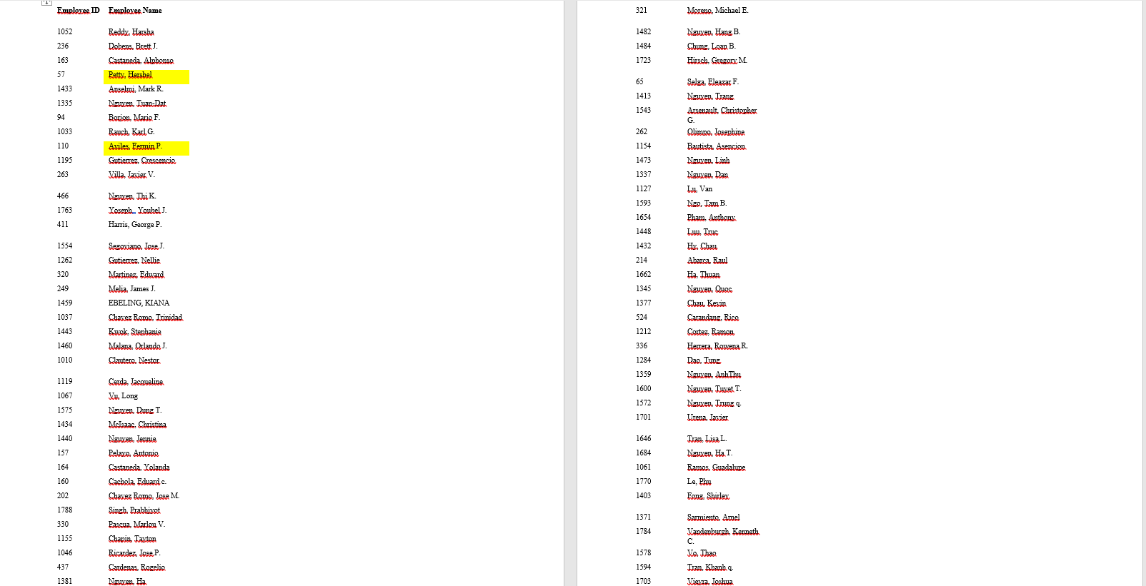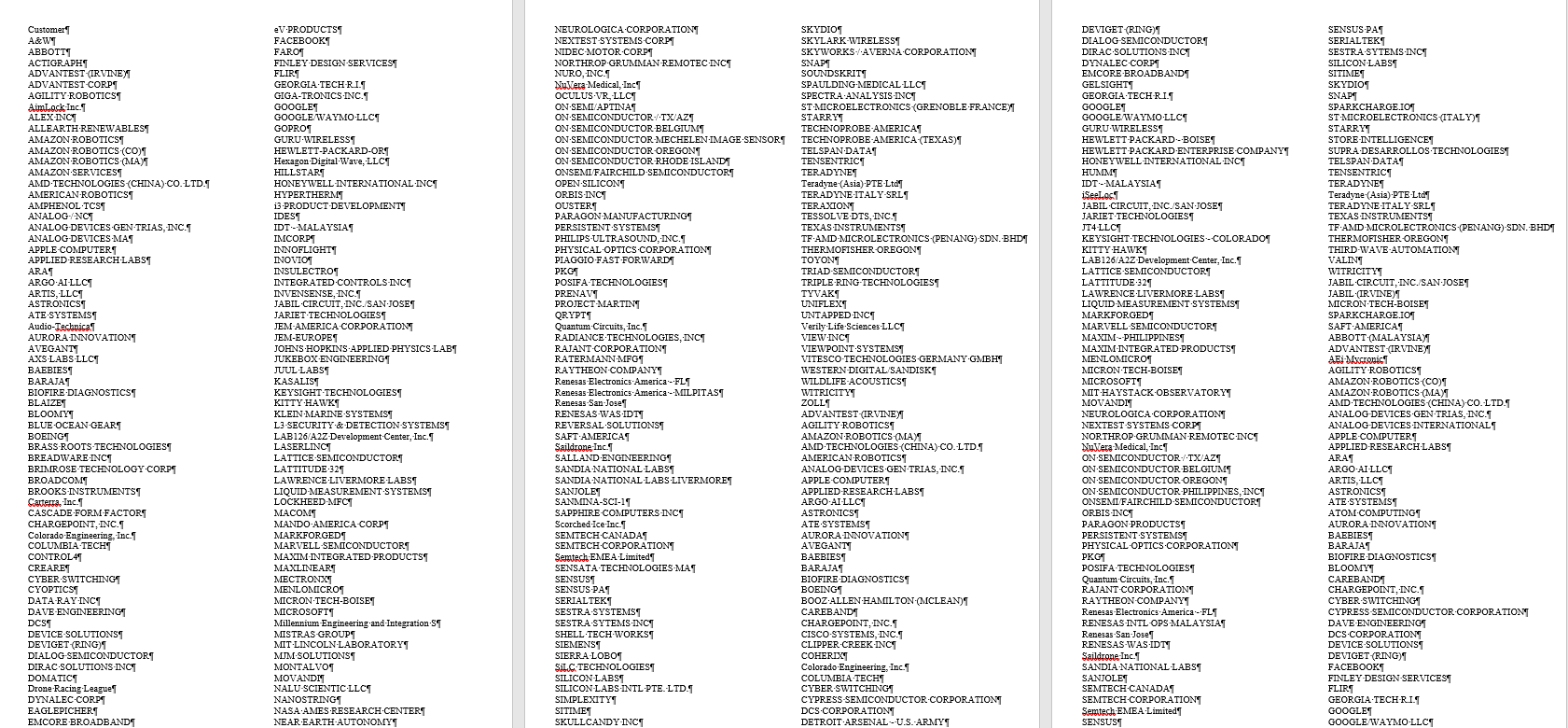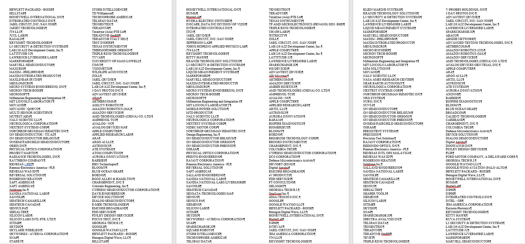 И в качестве демонстрации наших намерений, мы публикуем список работников компании с идентификаторами: