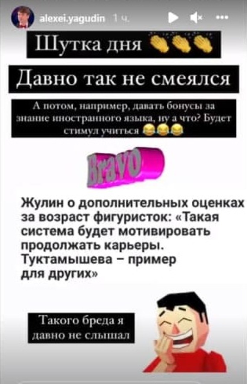 «Шутка дня» . Ягудин — о предложении Жулина давать . . .