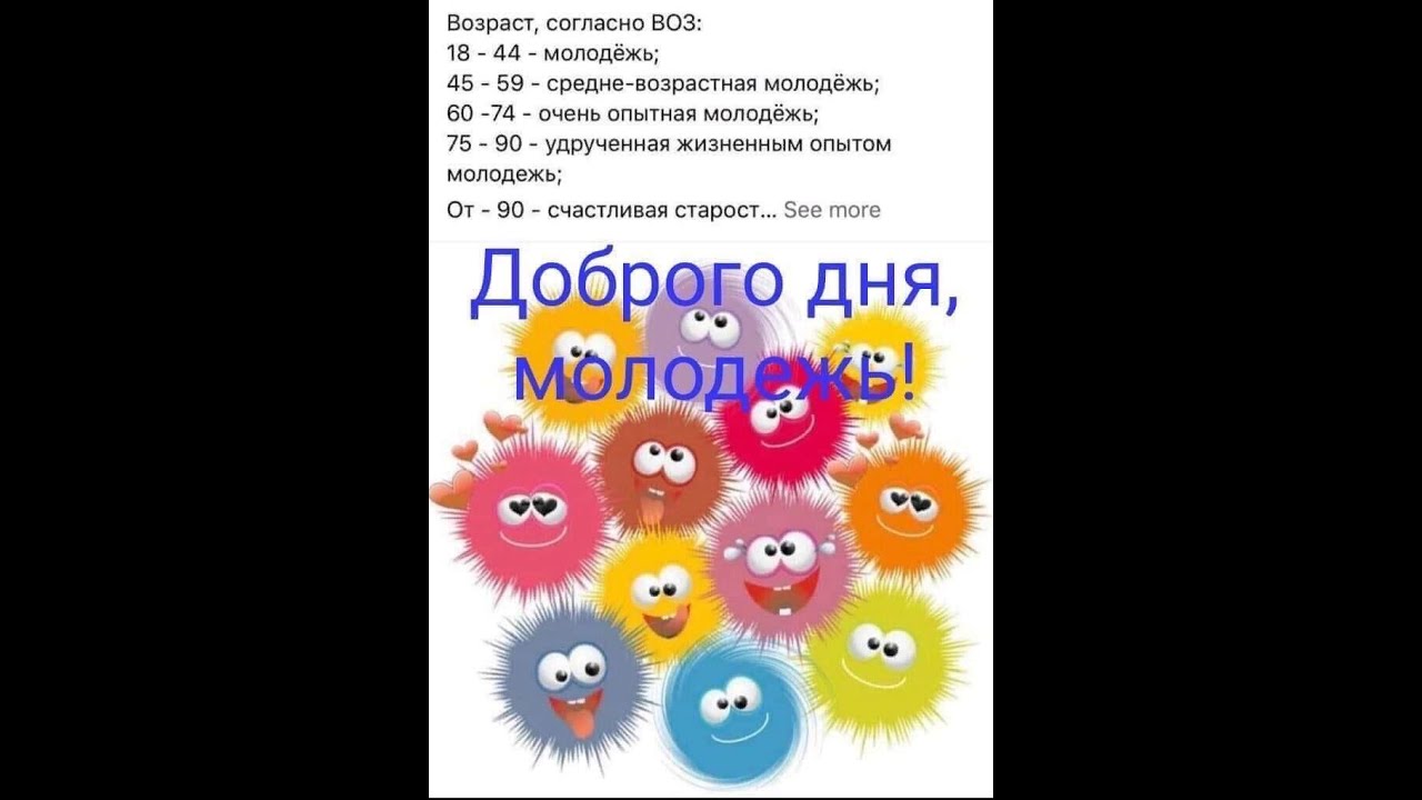 Возраст, согласно ВОЗ: 18 - 44 - молодёжь; 45 - 59 . . . | АйДаПрикол
