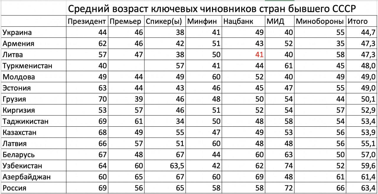 Возраст глав стран