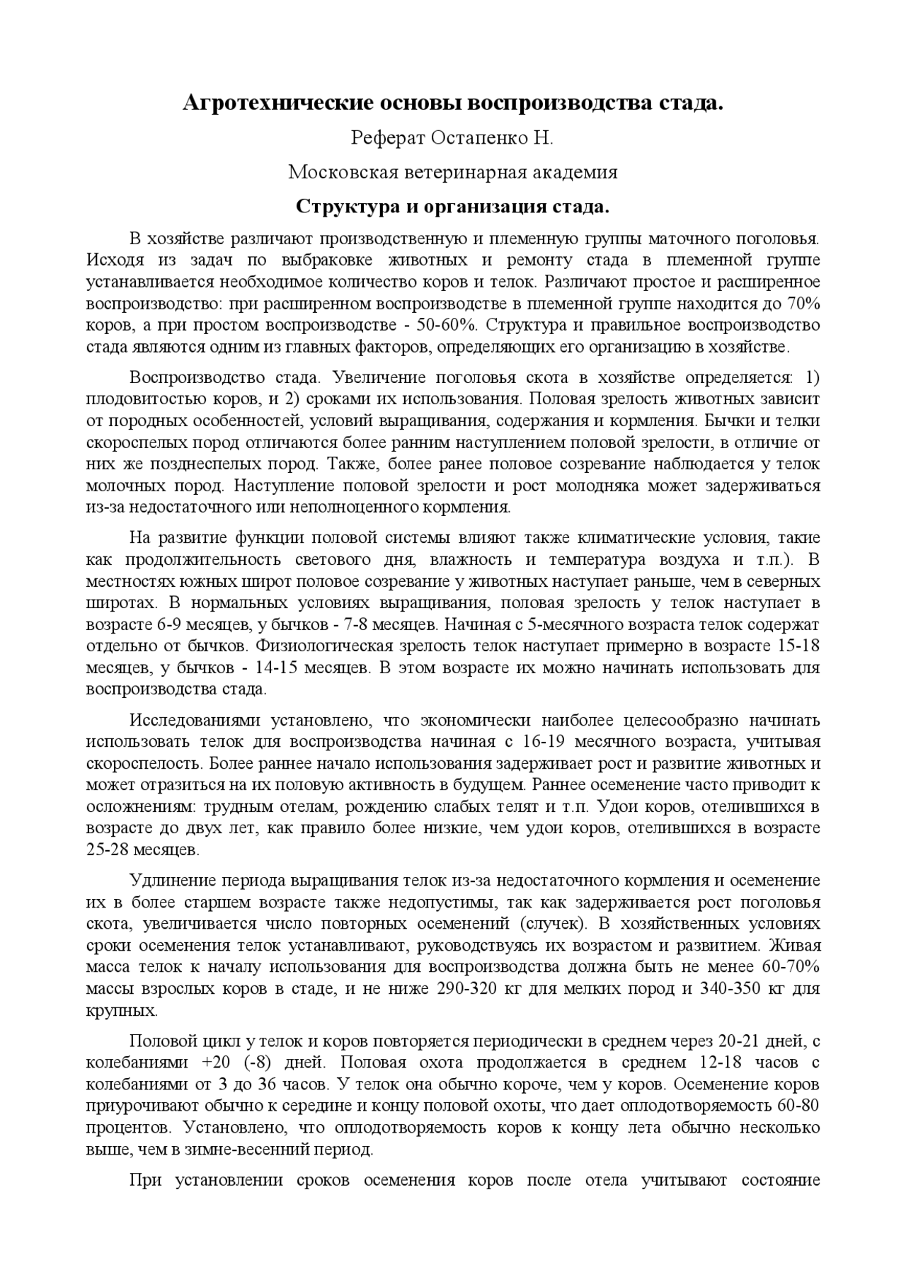 1 . Биологические особенности размножения крупного рогатого . . .